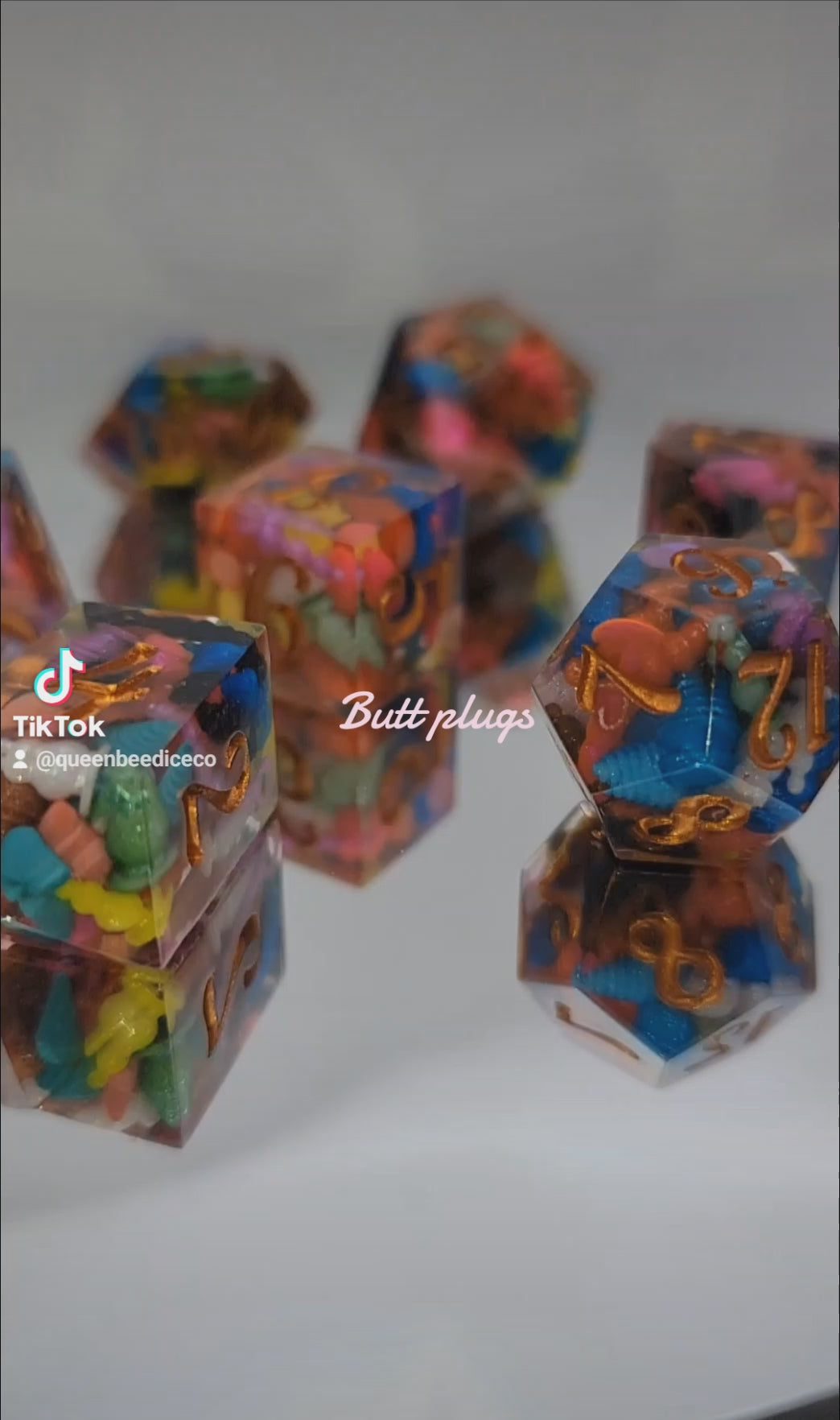 Queen Bee Dice Co uses Crit Cast Resin as the base for all of our dice.