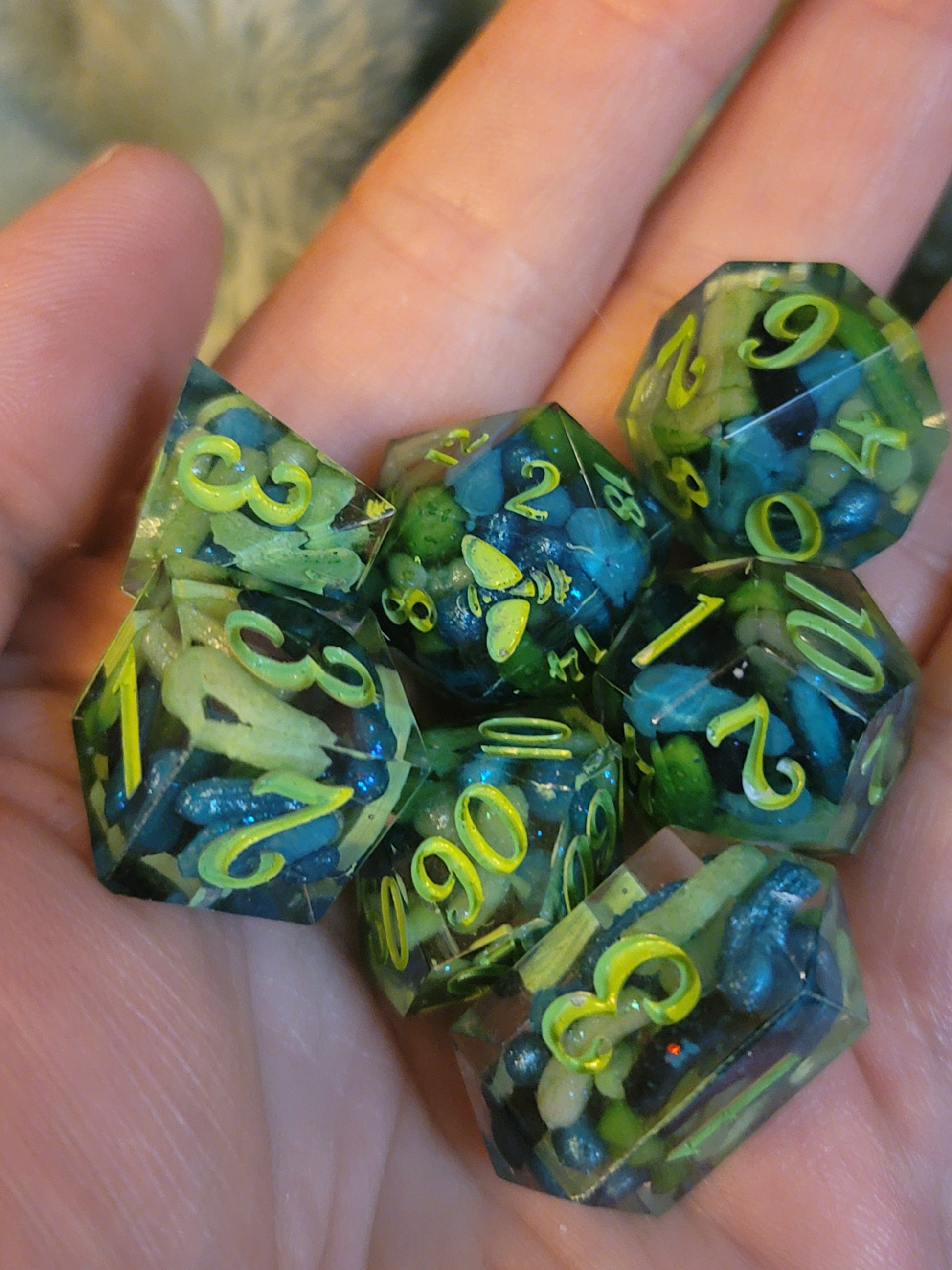 Queen Bee Dice Co uses Crit Cast Resin as the base for all of our dice.